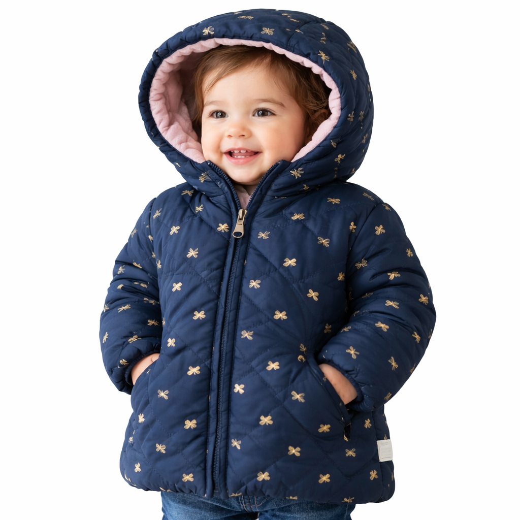 ماركة Koton أصلية 100% بخامة عالية الجودة مصممة لتمنح طفلتك الدفء والراحة في فصل الشتاء. جاكيت مبطن باللون الكحلي بنقشة ناعمة أنيقة، مزود بكابيشو مبطن من الداخل وسوستة أمامية مع جيوب جانبية، يوفر حماية ممتازة من البرد وإطلالة شتوية لطيفة ومميزة. مناسب للأطفال من عمر 6 إلى 7 سنوات.