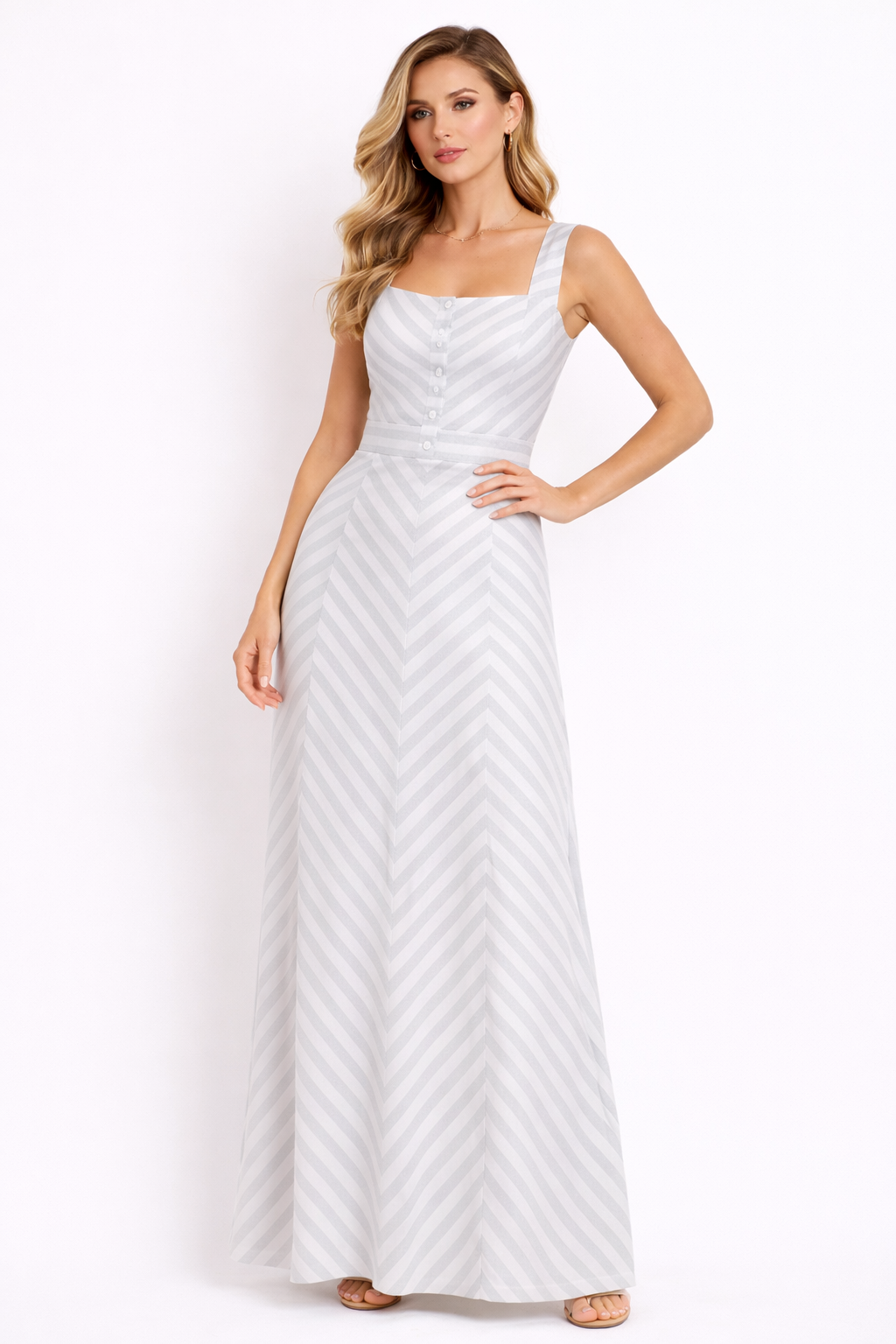فستان مارسينو رمادي فاتح بخطوط بيضاء