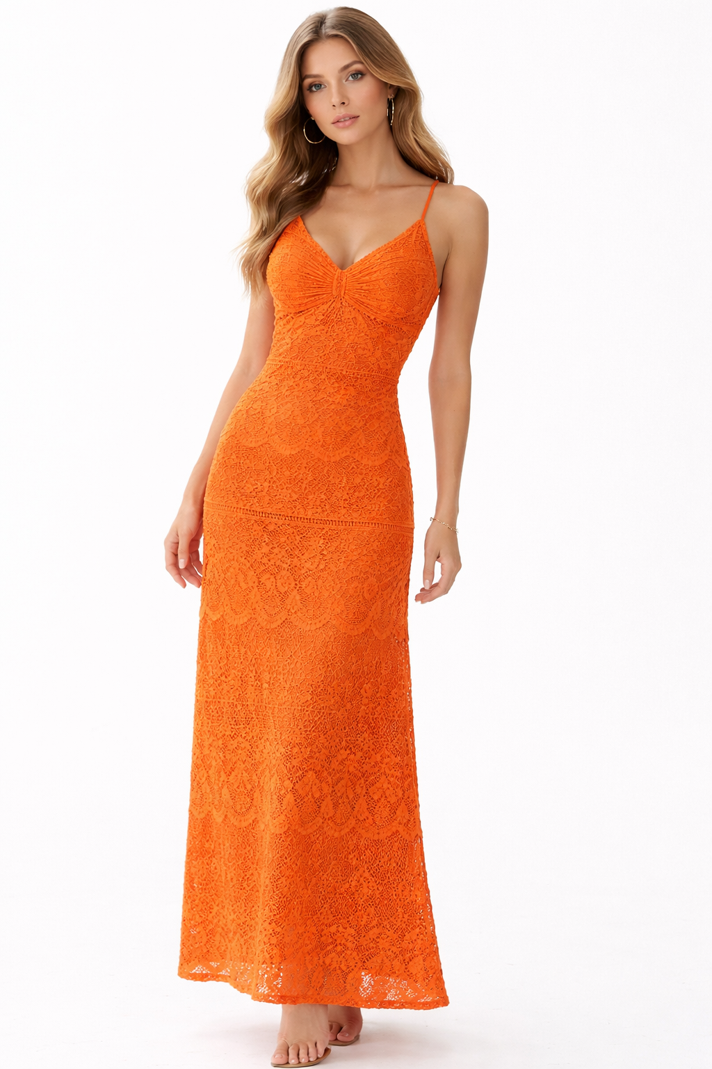 فستان مارسينو فستان دانتيل برتقالي عصري.