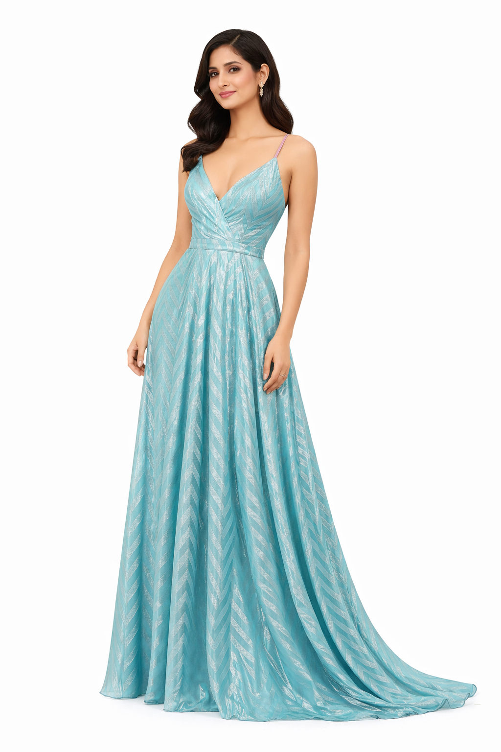 فستان بليسيه تركواز لامع وأنيق(GUESS)