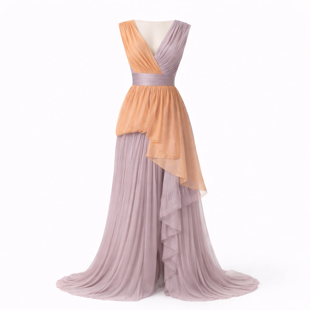 فستان سهرة طويل بتصميم أنثوي راقٍ، يأتي بتدرج لوني أنيق باللون الوردي الغباري مع درجات موف ناعمة تضيف لمسة فخامة وجاذبية. يتميز بقصة صدر متقاطعة على شكل حرف V تُبرز جمال القوام، مع خصر محدد يمنح مظهراً متناسقاً وأنيقاً. تنسدل التنورة بطول كامل بخامة خفيفة وانسيابية مع لمسة لامعة خفيفة تعكس الإضاءة بشكل جذاب، بالإضافة إلى شق جانبي أنيق يمنح حرية في الحركة ولمسة عصرية. خيار مثالي للمناسبات المسائية، السهرات الراقية، وحفلات الزفاف. (جيس)