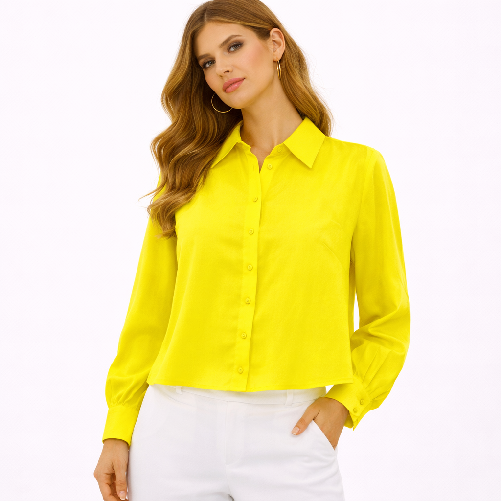 قميص نسائي أنيق بقصة كلاسيكية عصرية ولون ليموني مشرق يضيف لمسة حيوية لإطلالتكِ، مزود بأزرار أمامية وأكمام طويلة بتفصيلة ناعمة تمنحكِ مظهراً راقياً ومريحاً في نفس الوقت (Hanita). مثالي للتنسيق مع البنطلونات الرسمية أو الإطلالات الكاجوال الأنيقة.