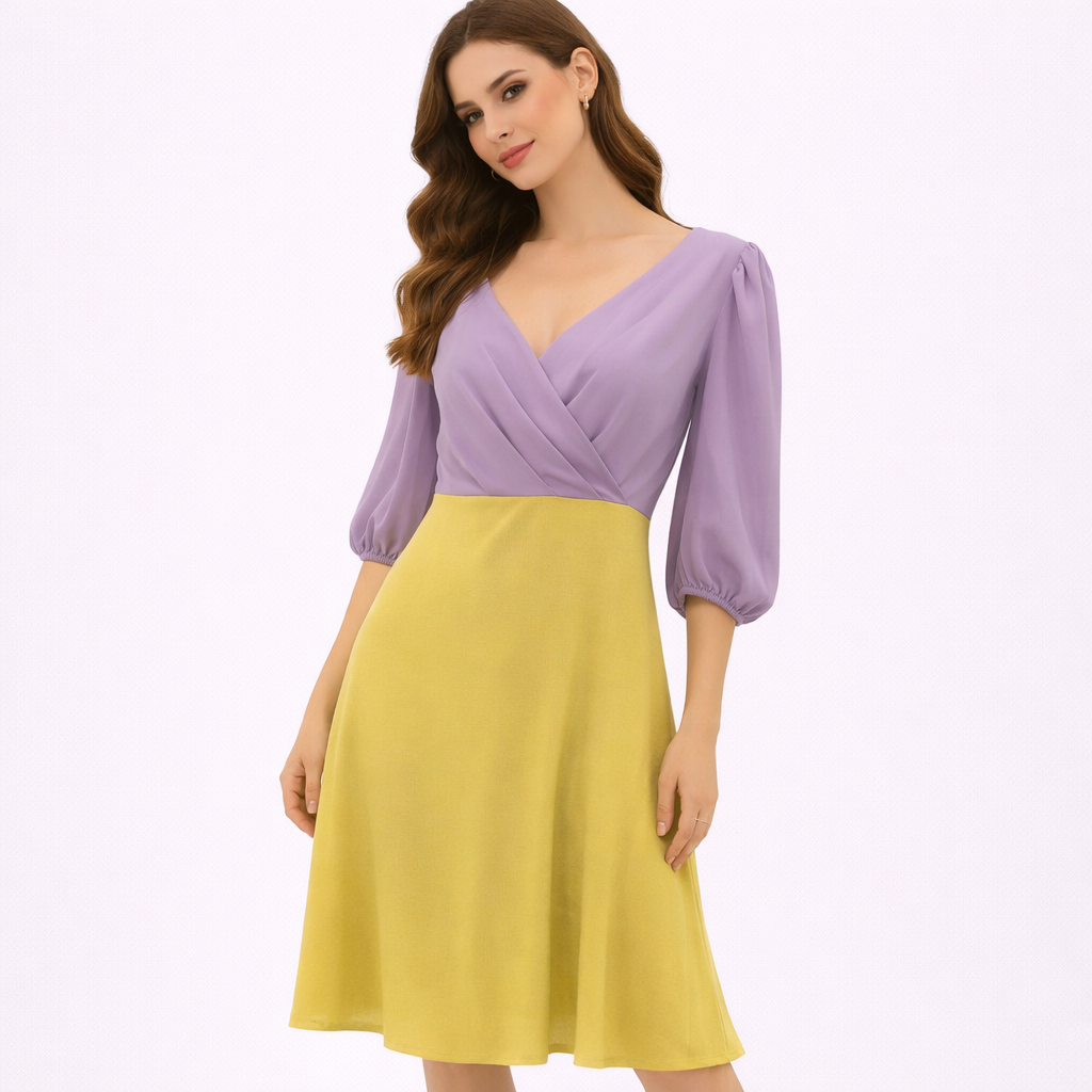 فستان حريمي بنفسجي قي اصفر مركة (Hanita)