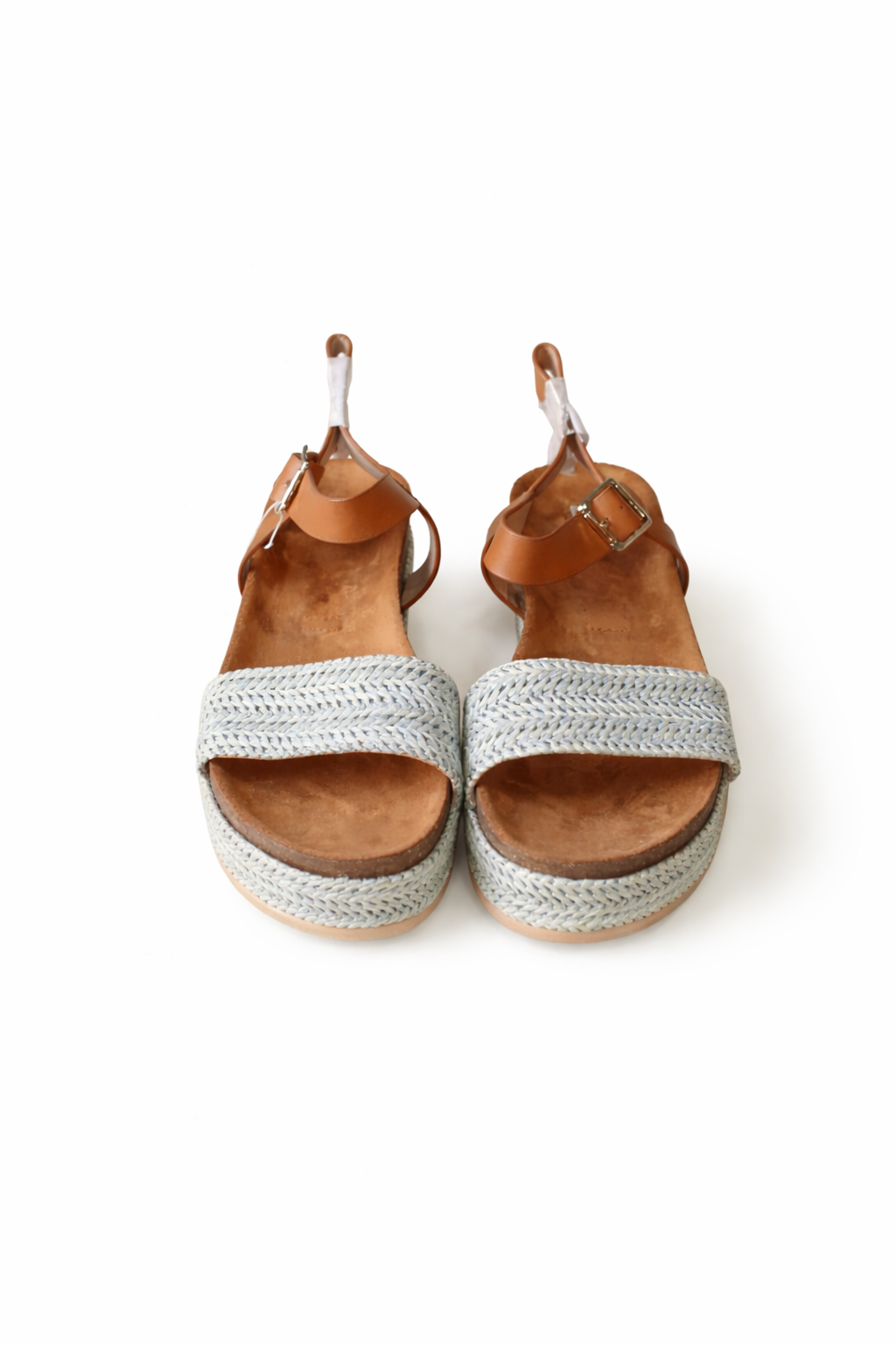 أحذية نسائية من MGTN بتصميم أنيق وخامات مريحة، مثالية للاستخدام اليومي والمناسبات المختلفة صندل نسائي كاجوال بنعل سميك (Platform)، يجمع بين الأناقة العصرية والراحة اليومية. يتميز بسيور علوية من القماش المنسوج (Woven) وحزام كاحل جلدي بإبزيم قابل للتعديل لضمان الثبات والراحة طوال اليوم.