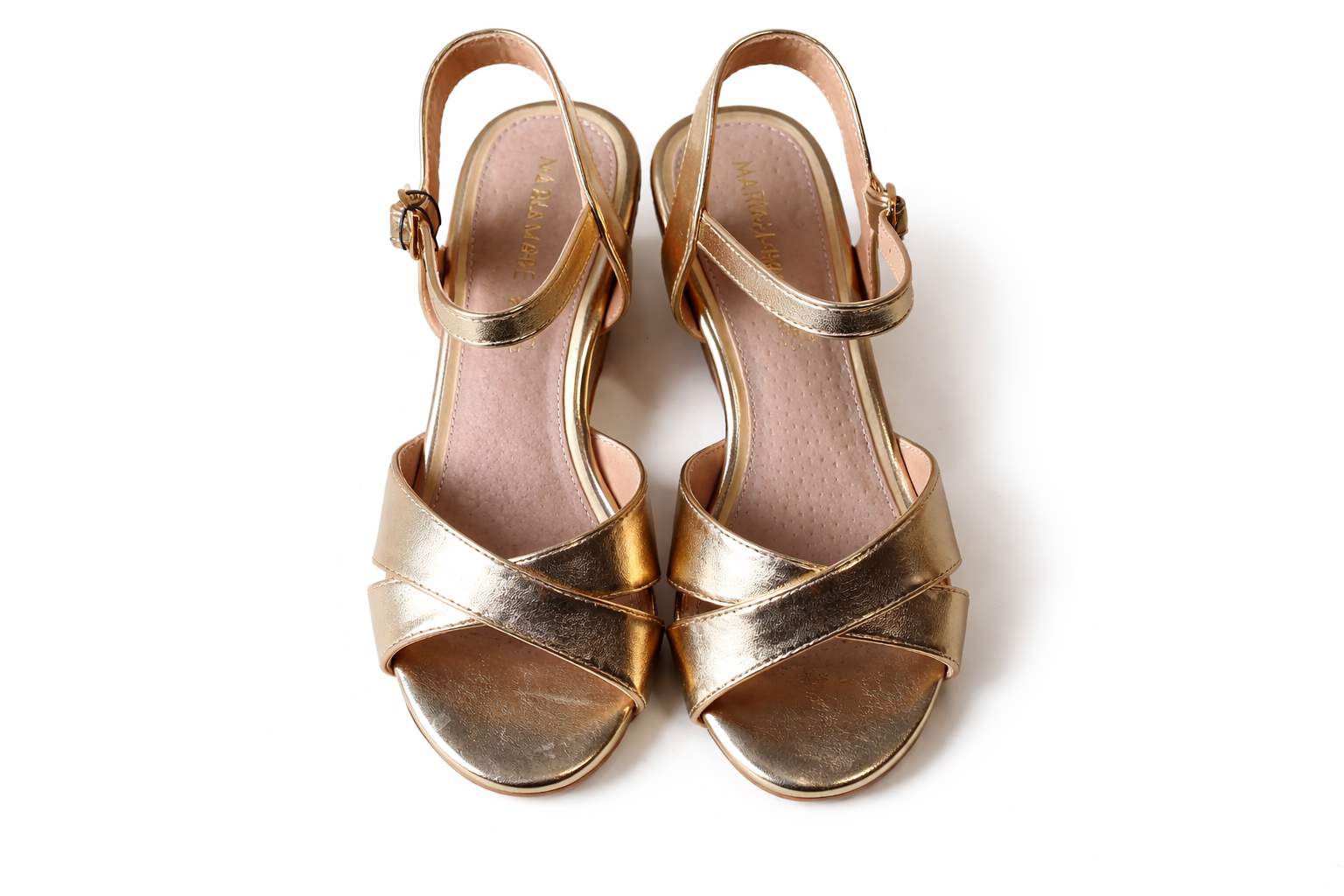 Mariamare براند أحذية نسائي عصرية بتصميمات أنيقة وجودة عالية، أصلي 100% ومصنوع في إسبانيا ليجمع بين مريح لإطلالة مفعمة بالأنوثة في المناسبات. صندل ذهبي فاخر يتميز بسيور متقاطعة أنيقة ونعل مرتفع (Wedge) مريح، مصمم بفرش داخلي مبطن لضمان الراحة التامة مع إطلالة مسائية مشرقة.