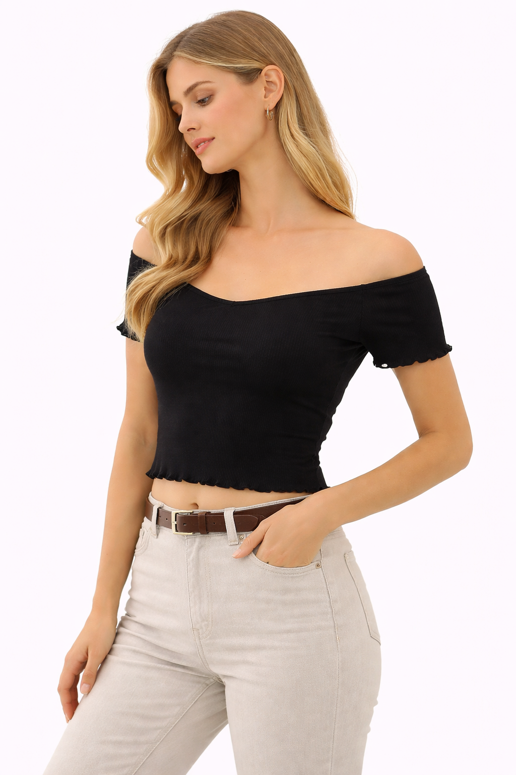 ماركة جيس (Guess) هي واحدة من أشهر العلامات التجارية العالمية في عالم الأزياء، تأسست عام 1981 في الولايات المتحدة الأمريكية. ا كروب توب أسود "أوف شولدر" بقصة ضيقة وأطراف متموجة جذابة، قطعة أساسية مرنة تبرز جمالك في الإطلالات الكاجوال والسهرات.