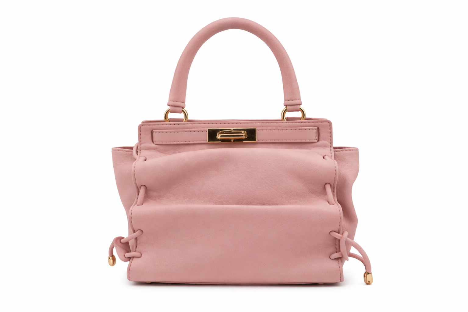 حقيبة إيطالية من (Alex Max) بلون وردي ناعم وتصميم عصري يجمع بين ثنيات الجلد الجانبية والمقبض العلوي الأبيض، مع إبزيم ذهبي يضفي لمسة من الأناقة والتميز.