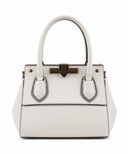 شنطة يد أنيقة من براند Alex Max بتصميم كلاسيكي عصري باللون الأبيض مع تفاصيل ذهبية تضيف لمسة فخامة راقية. هيكل منظم وعملي يجعلها مثالية للإطلالات الرسمية والكاجوال الأنيقة.