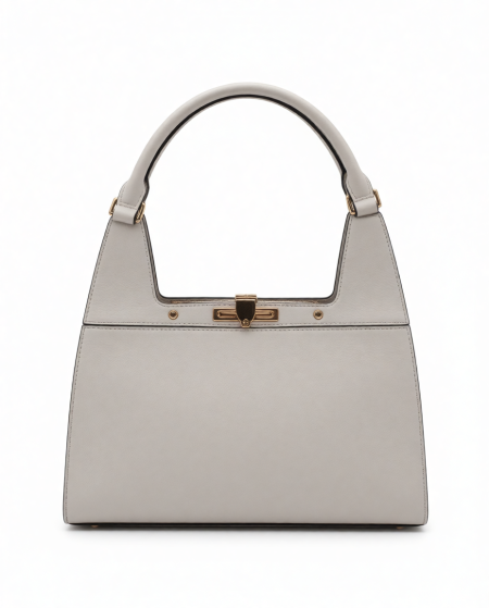 حقيبة إيطالية من (Alex Max) بتصميم هندسي عصري باللون "الأوف وايت"، تتميز بخطوط حادة وإبزيم ذهبي أنيق لإطلالة رسمية فاخرة.