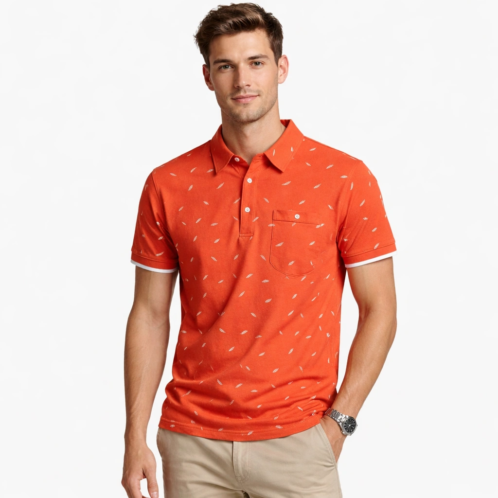 قميص بولو برتقالي بنقشة عصرية (IN SIDE)