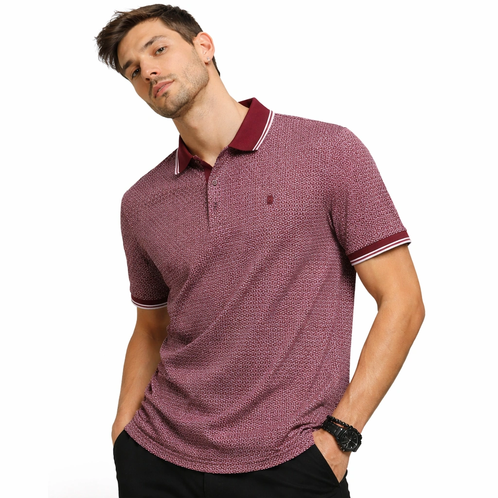 تيشرت بولو عنابي بنقشة فهد عصرية(IN SIDE)