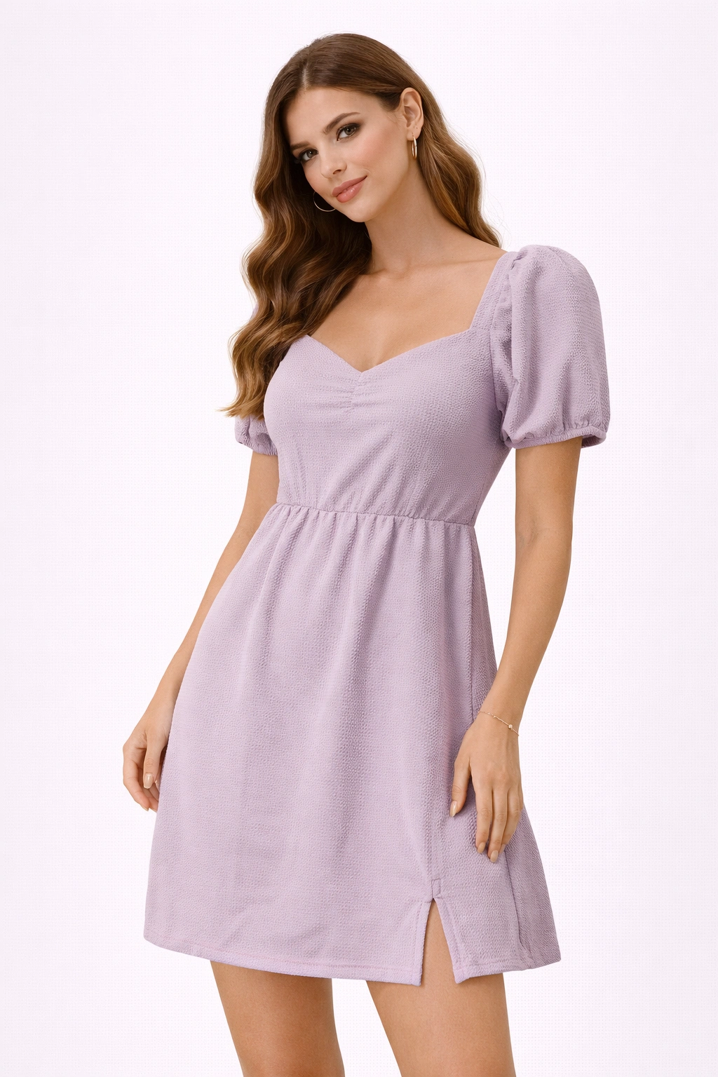 فستان نسائي أنيق بلون بنفسجي ناعم يمنحك إطلالة أنثوية جذابة ومميزة. يتميز بتصميم عصري بياقة مربعة مع أكمام قصيرة منفوخة تضيف لمسة أنيقة على الإطلالة. يأتي بقصة خصر محددة مع تنورة واسعة قليلاً تعطي راحة في الحركة وتبرز جمال القوام. مناسب للخروجات اليومية والمناسبات البسيطة، كما أن خامته المميزة تمنحك إحساسًا بالراحة والأناقة طوال اليوم. الفستان من ماركة INSIDE الأصلية المعروفة بتصاميمها العصرية وجودة خاماتها.