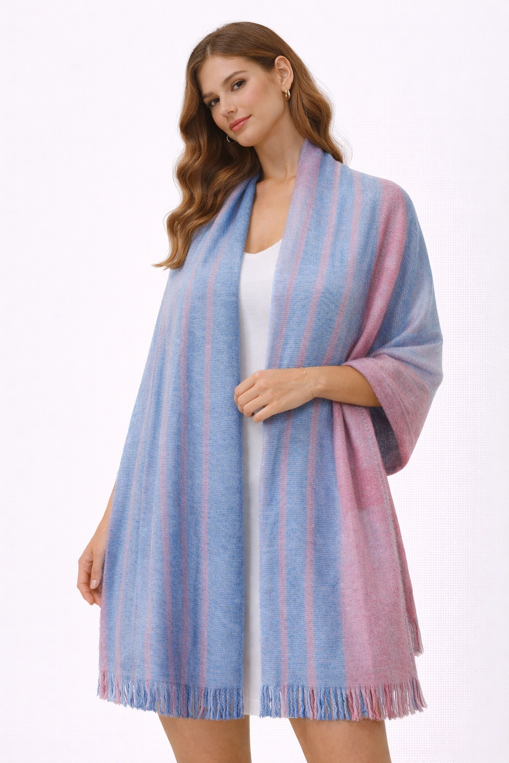شال أنيق بدرجات الباستيل الهادئة بين الأزرق والوردي يضيف لمسة ناعمة وعصرية لإطلالتك. يتميز بخامة خفيفة ومريحة تناسب الاستخدام اليومي وتكمل الإطلالات الكاجوال بسهولة. الشال من ماركة INSIDE ويتميز بتصميم بسيط وأنيق مناسب لمختلف الإطلالات.
