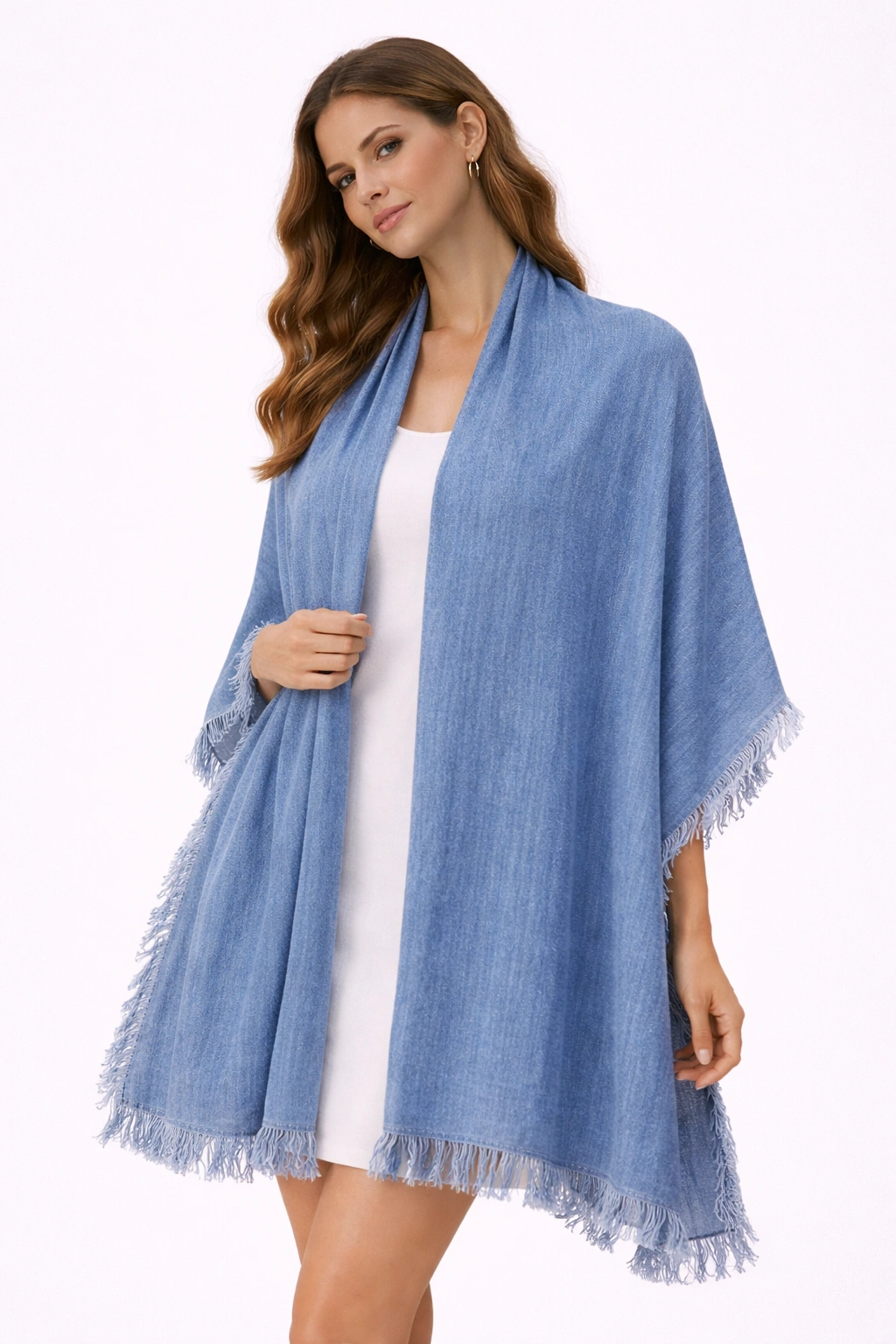 شال أنيق بلون أزرق فاتح من ماركة INSIDE يضيف لمسة عصرية وناعمة لإطلالتك. يتميز بخامة خفيفة ومريحة مع أطراف بشراشيب تمنحه مظهراً أنيقاً. مثالي للتنسيق مع الإطلالات اليومية والكاجوال لمظهر أنيق وبسيط.