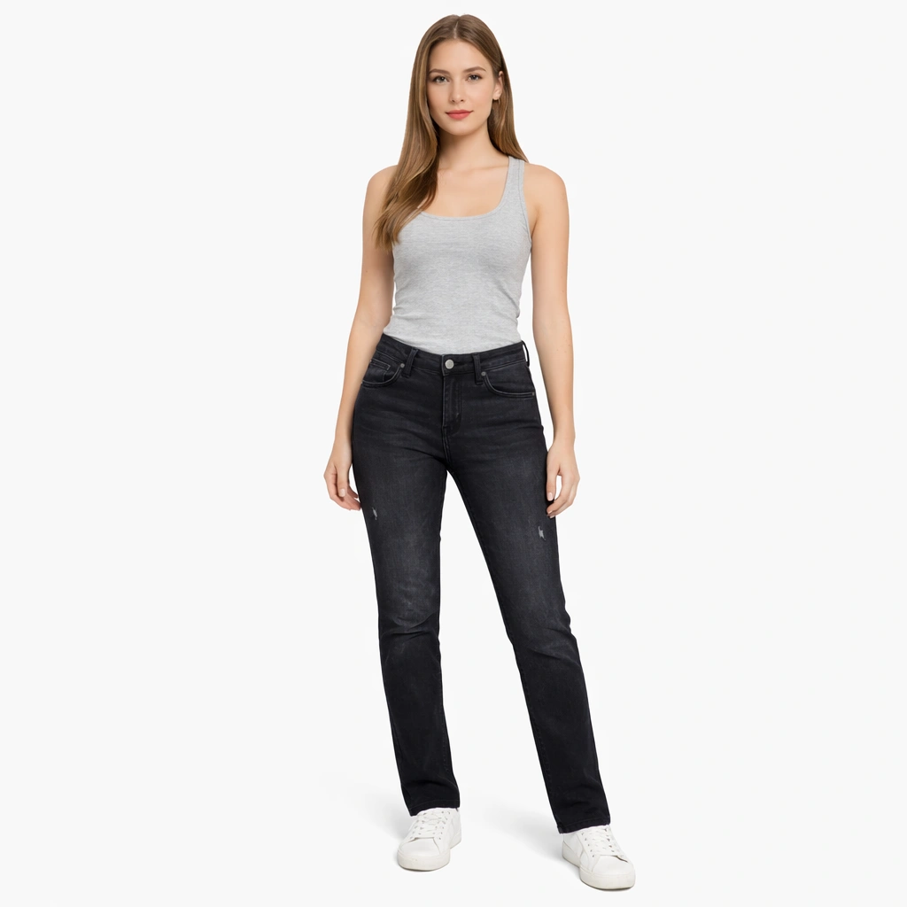 بنطلون جينز أسود "سليم فيت" عصري، بلمسة باهتة وتفاصيل تنسيل بسيطة تمنحك إطلالة عملية وأنيقة تناسب كل الأوقات.