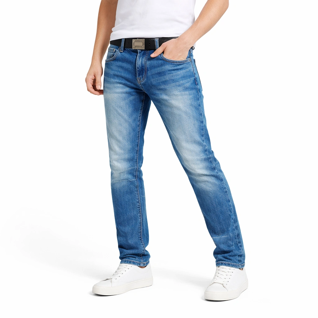 درجة الأزرق السماوي الفاتح (Light Blue) مع "تبييض" خفيف عند الركبتين، مما يمنحه مظهراً طبيعياً وجذاباً قصة (Slim Fit) محددة تمنحك مظهراً رياضياً وأنيقاً في نفس الوقت، مع الحفاظ على حرية الحركة قماش دينم خفيف الوزن وعالي الجودة، يضمن لك التهوية والراحة حتى في الأيام الحارة مثالي جداً مع السنيكرز الأبيض والتيشيرتات ذات الألوان الفاتحة أو الباستيل لإطلالة صباحية متكاملة