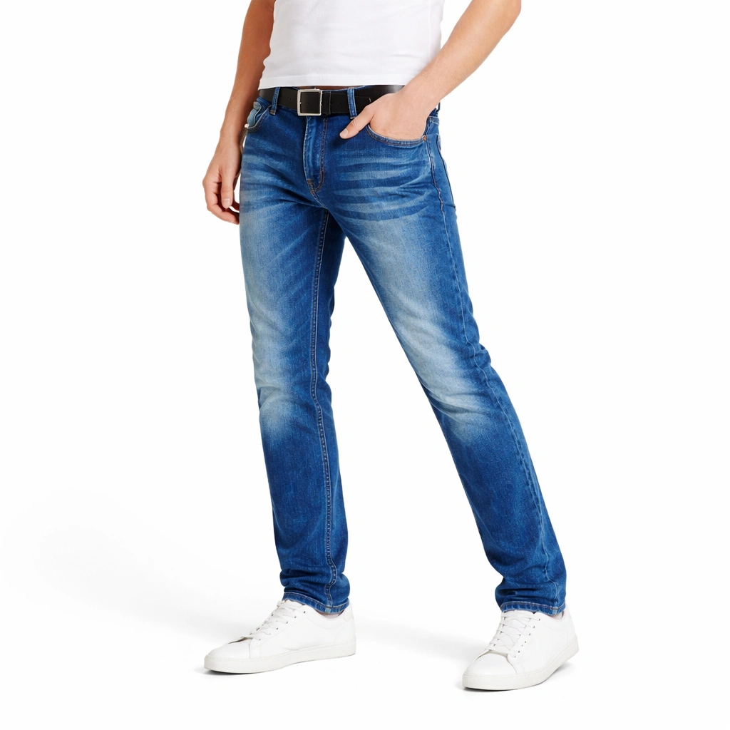 قصة (Slim-Straight) متوازنة، توفر لك الشكل المحدد للساقين مع راحة فائقة في الحركة والجلوس درجة الأزرق النيلي العميقة التي تتدرج لنغمات أفتح، مما يسهل تنسيقه مع الأحذية البيضاء أو البنية. نسيج متين ومقاوم للتهالك، مصمم ليحافظ على رونقه وشكل القصة حتى بعد الغسيل المتكرر