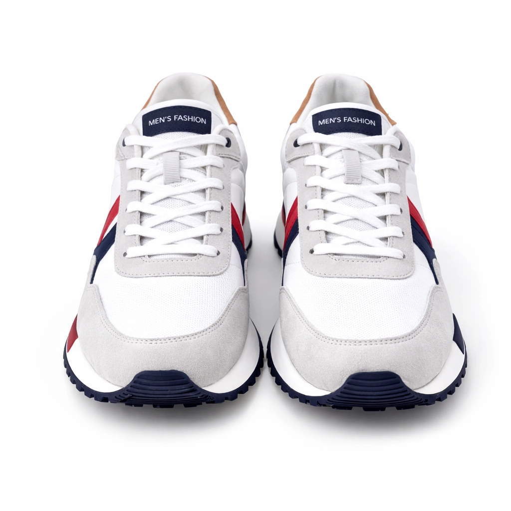 حذاء رياضي رجالي باللون الأبيض مع تفاصيل كحلي وأحمر (inside) بتصميم عصري يمنحك إطلالة شبابية مميزة. يتميز بأربطة أمامية ونعل مريح يوفر ثبات أثناء الحركة، مع خامات عملية تناسب الاستخدام اليومي. مثالي للإطلالات الكاجوال والرياضية.