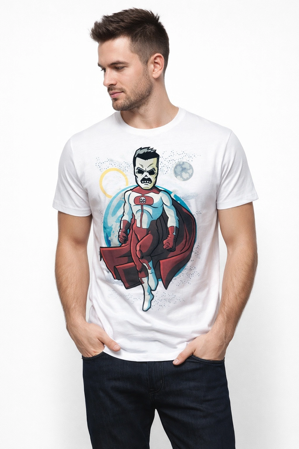 تيشيرت رجالي بطبعة بطل خارق أبيض (INSIDE)