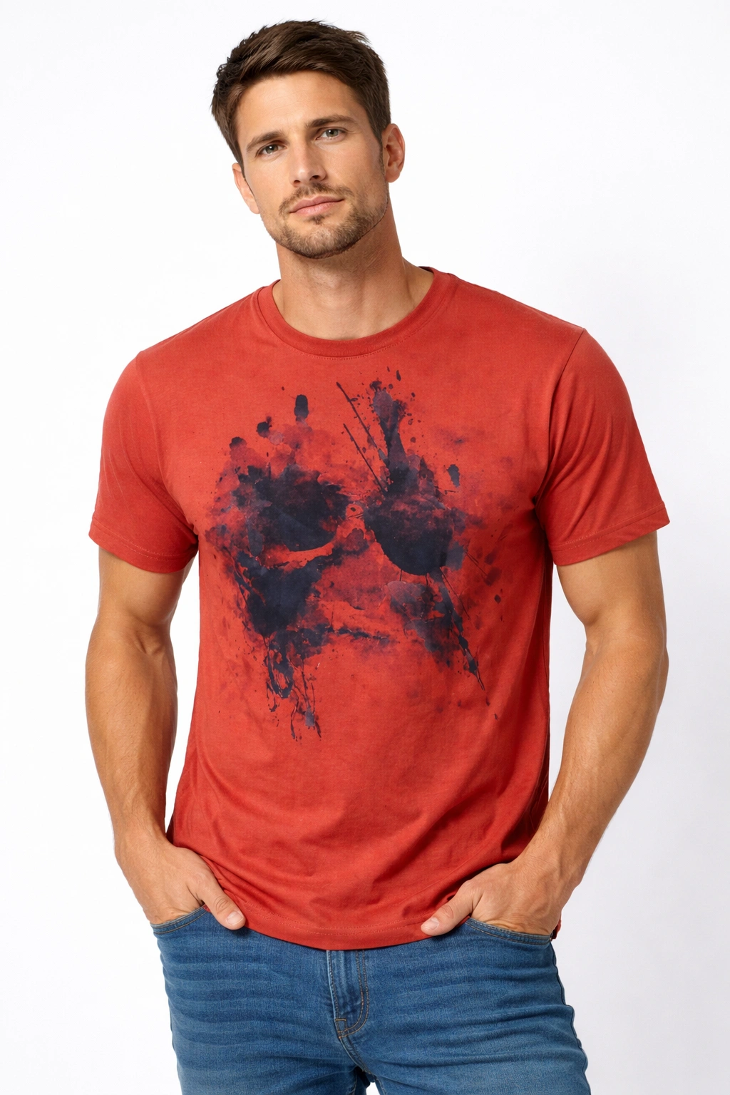تيشيرت رجالي بلون أحمر آجري مميز من (INSIDE)، بتصميم أمامي عصري وظهر سادة بالكامل لستايل أنيق وبسيط. مصنوع من قطن ناعم يوفر راحة طوال اليوم ومناسب للارتداء اليومي والخروجات الكاجوال.