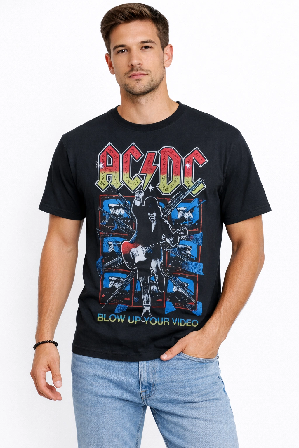 تيشيرت رجالي أسود بخامة قطن مريحة، يتميز بطباعة روك جريئة مستوحاة من أجواء الحفلات الموسيقية، ليمنحك إطلالة شبابية قوية وعصرية. مناسب للوك الكاجوال اليومي.