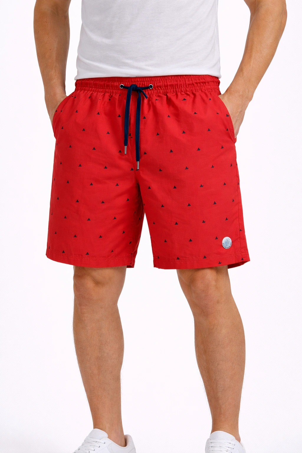 شورت رجالي أحمر من (INSIDE) بتصميم عصري مع طباعة ميني جرافيك كحلي تضيف لمسة شبابية مميزة. يتميز بخصر مطاطي ورباط قابل للتعديل لراحة وثبات أفضل، مع جيوب جانبية وجيب خلفي عملي. مثالي للوك الصيفي والكاجوال اليومي.