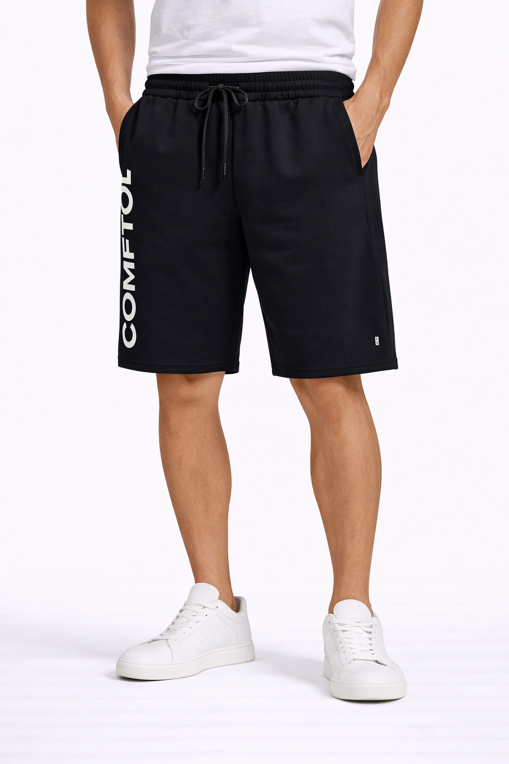 شورت رياضي رجالي باللون الأسود من (INSIDE) بتصميم عملي وقصة مريحة تناسب الاستخدام اليومي والأنشطة الرياضية. يتميز بطباعة جانبية عصرية وخامة مريحة تساعد على الحركة بسهولة مع مظهر كاجوال أنيق.