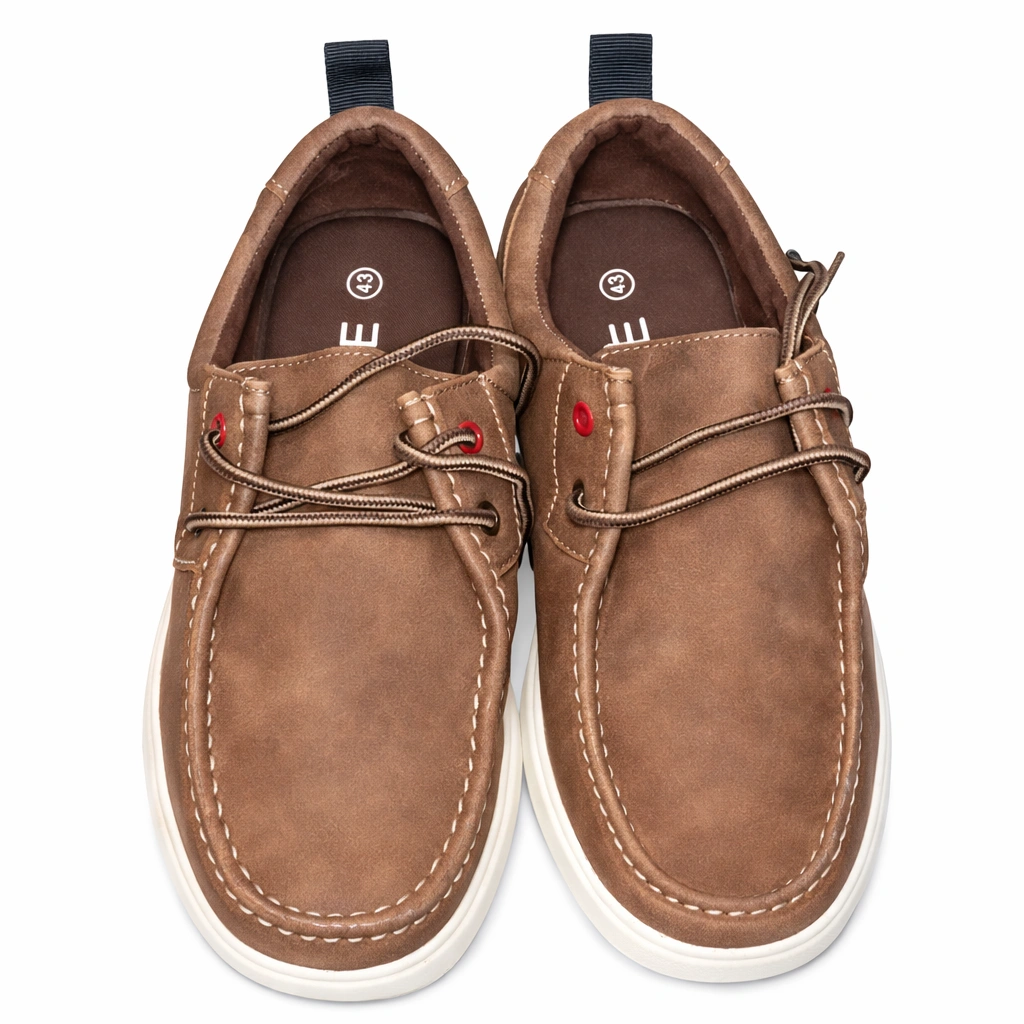 حذاء كاجوال رجالي أنيق من ماركة INSIDE بتصميم عصري ولون بني مميز يناسب الإطلالات اليومية المختلفة. يتميز بخامة مريحة مع خياطة ظاهرة تضيف لمسة كلاسيكية أنيقة، بالإضافة إلى نعل أبيض متين يوفر راحة وثباتًا أثناء المشي. مناسب للتنسيق مع الجينز والملابس الكاجوال لإطلالة عملية وعصرية.