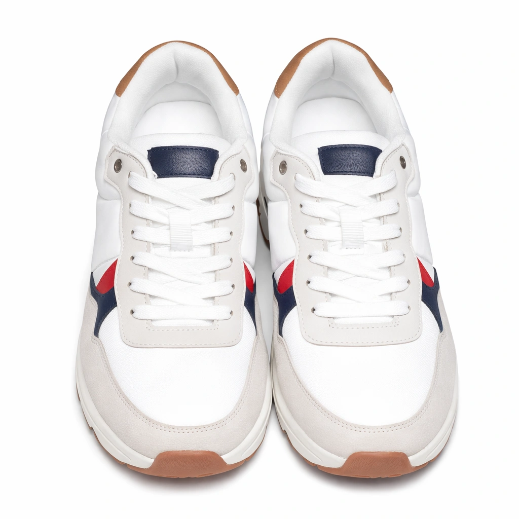حذاء سنيكرز رجالي أنيق من ماركة INSIDE بتصميم عصري يجمع بين اللون الأبيض مع تفاصيل باللونين الكحلي والأحمر لإطلالة مميزة. مصنوع من خامات مريحة مع بطانة داخلية ناعمة توفر راحة أثناء المشي طوال اليوم. يتميز بنعل مطاطي متين يمنح ثباتًا جيدًا، مما يجعله مناسبًا للاستخدام اليومي ولتنسيقه مع الجينز أو الملابس الكاجوال لإطلالة عصرية وعملية.