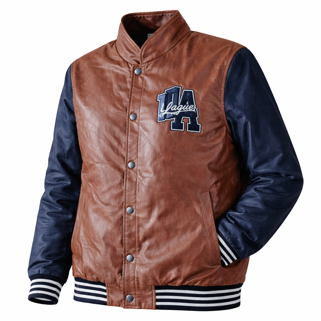 • التصميم: جاكيت ستايل جامعي (Varsity)